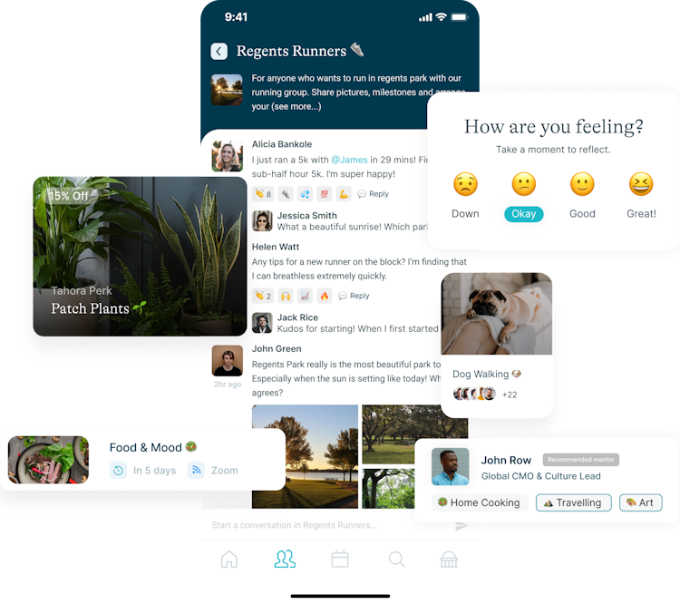 Create an inclusive environment for employees to thrive and stay connected with a mobile platform facilitating virtual and in-person interaction.
