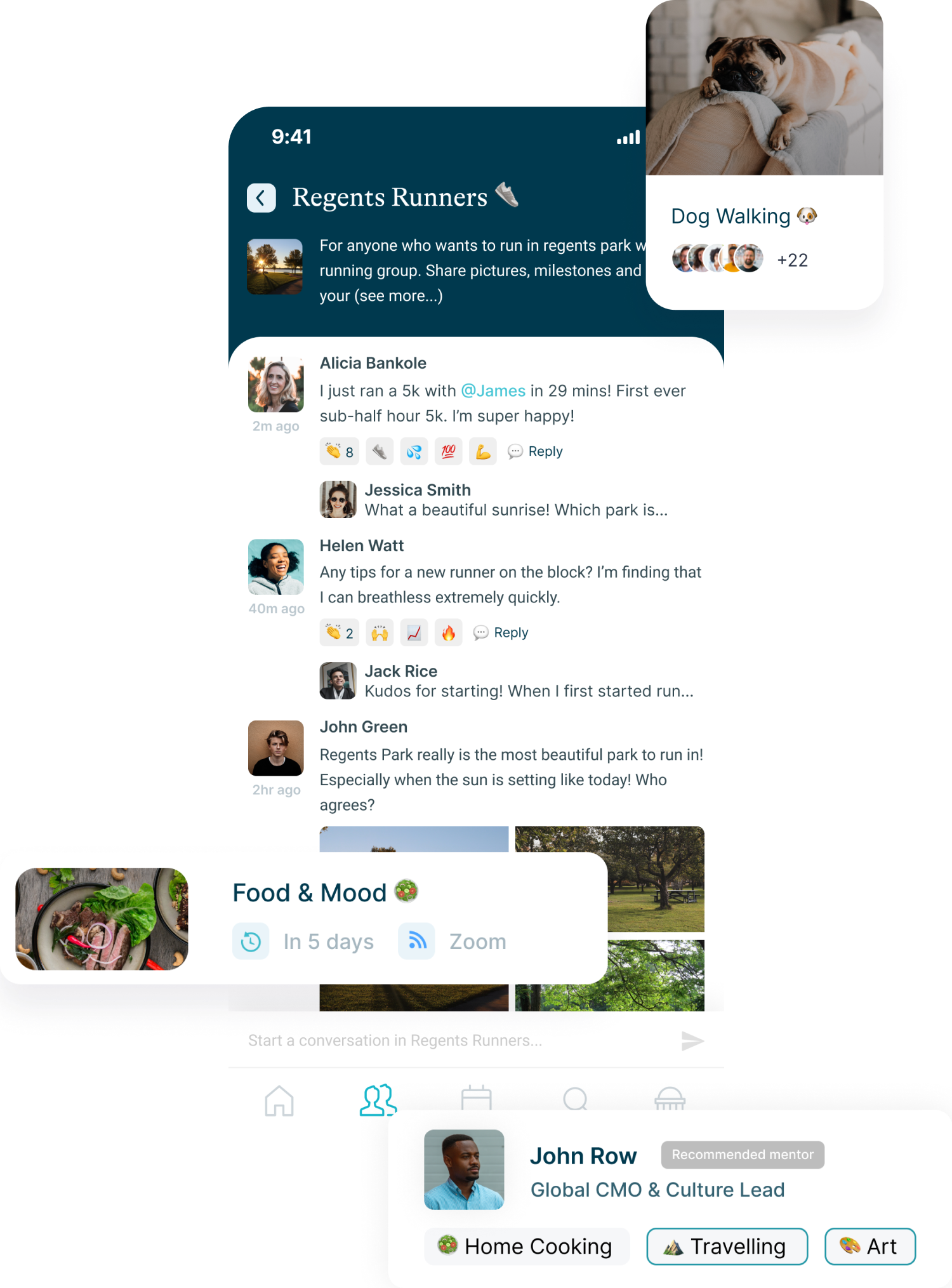 Unite the workforce by connecting across silos and locations, with like-minded colleagues, mentors, events, support programmes and more.